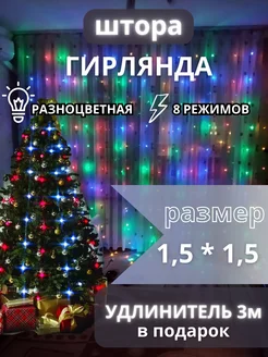 Гирлянда штора 1,5x1,5 разноцветная на окно