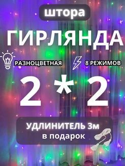 Гирлянда штора 2x2 разноцветная на окно