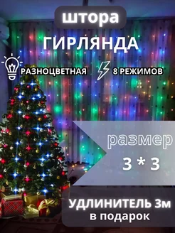 Гирлянда штора 3x3 разноцветная на окно