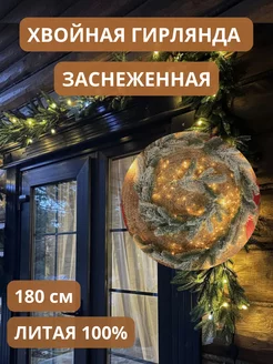 Новогодняя хвойная гирлянда 180 см литая со снегом