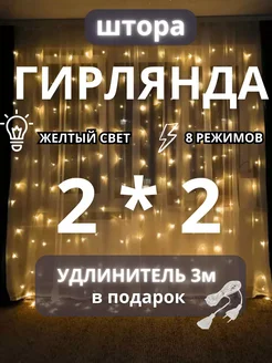 Гирлянда штора 2x2 желтая на окно