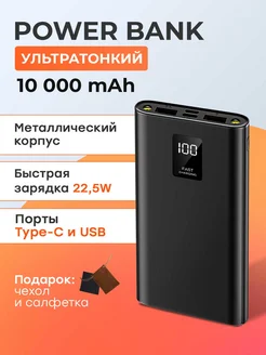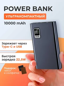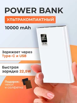 Повербанк мини 10000 mAh с быстрой зарядкой для телефона
