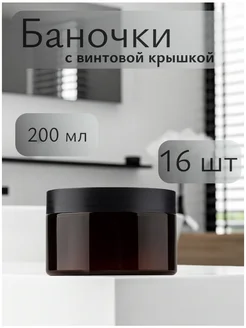 Банка с черной винтовой крышкой, 200 мл, 16 шт