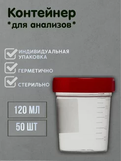 Контейнеры для анализов стерильные 120 мл, 50 шт