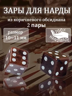 Игральные кости из обсидиана, коричневый ( 10 пар )