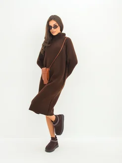Платье теплое оверсайз свитер вязаное с горлом