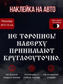 Наклейка на авто Не торопись наверху принимают круглосуточно