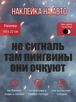 Наклейка на грузовик НЕ сигналь там пингвины 50х22см