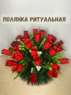 Ритуальная поляна-корзина розы бархатные на кладбище