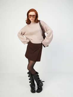Свитер оверсайз вязаный укороченный теплый