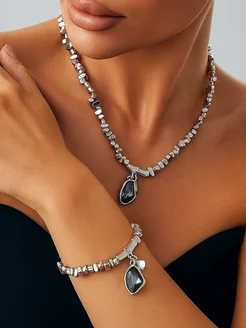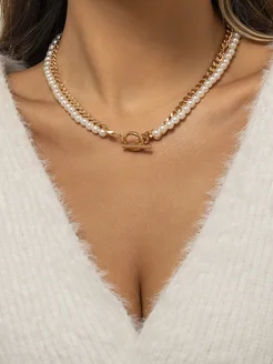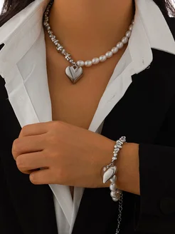 Бижутерия комплект чокер из жемчуга с сердцем и браслет