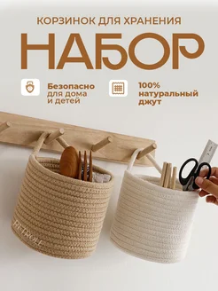 Набор плетеных корзин из джута для хранения 2 шт