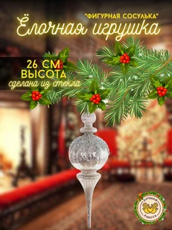 Игрушка елочная Сосулька фигурная стекло 26 см серебро
