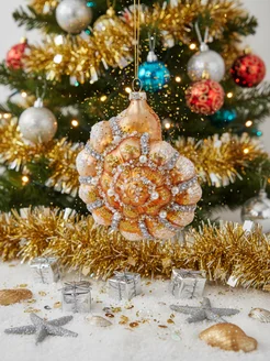 Игрушка елочная Ракушка с бисером и бусинами стекло 12 см