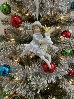 Игрушка елочная Ангел на олене пластик 9,5 см