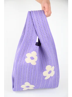 сумка шоппер вязаная с цветами средняя без ремня