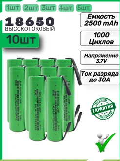 Аккумулятор 18650 с клеммой 2500mAh 10шт. Высокотоковый