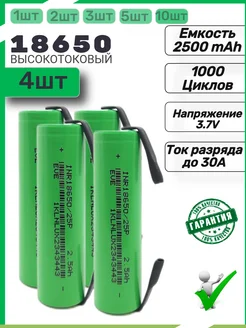 Аккумулятор 18650 с клеммой 2500mAh 4шт. Высокотоковый