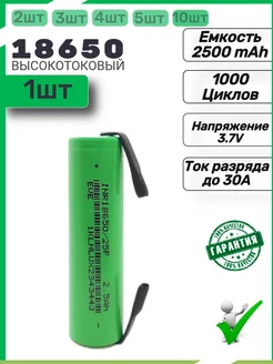 Аккумулятор 18650 с клеммой 2500mAh 1шт. Высокотоковый