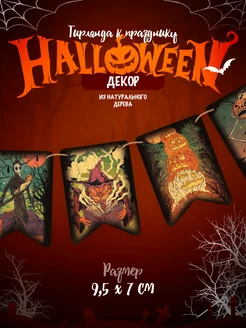 Хэллоуин декор гирлянда растяжка деревянные, набор 14 шт