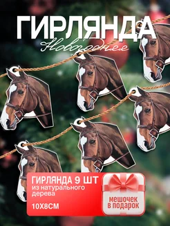 Флажки деревянные Новый Год и Рождество, набор 9 шт