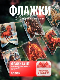 Флажки деревянные Новый Год и Рождество, набор 14 шт