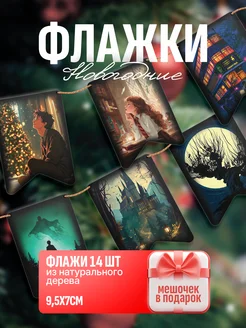 Флажки деревянные Гарри Поттер - Новый Год, набор 14 шт