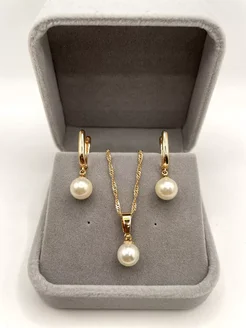 Подвеска с серьгами бижутерия "Висячий жемчуг"