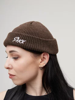 Шапка вязаная коричневая бини