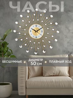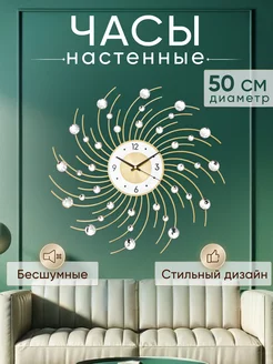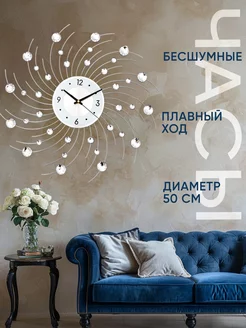 Часы настенные интерьерные бесшумные со стразами 50 см