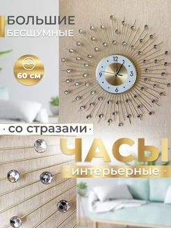 Часы настенные интерьерные бесшумные со стразами 60 см
