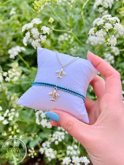 Комплект бижутерии браслет и цепочка с кулоном - Самолёт