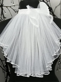 Воротник -жабо из фатина Белый с бантиком