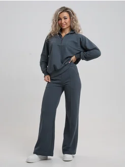 Брюки палаццо на резинке со стрелками клеш от бедра