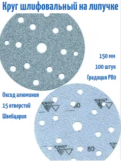 Шлифовальные круги на липучке 150 мм, Р80, 15 отв, 100 шт