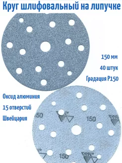 Шлифовальные круги на липучке 150 мм, Р150, 15 отв, 40 шт