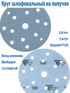 Шлифовальные круги на липучке 150 мм, Р120, 15 отв, 5 шт