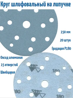 Шлифовальные круги на липучке 150 мм, Р180, 15 отв, 20 шт
