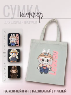 Сумка - шоппер Лабубу белая на лето для пляжа