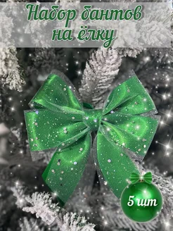 Набор зеленых бантов на ёлку 5 штук