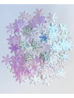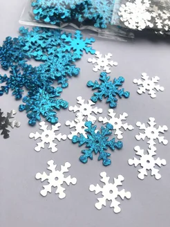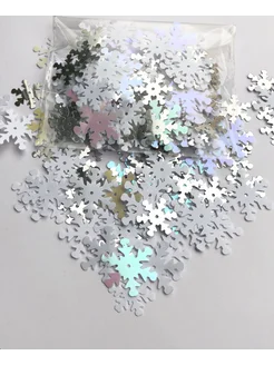 Пайетки новогодние снежинки 20 и 25 мм, 200 шт микс