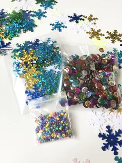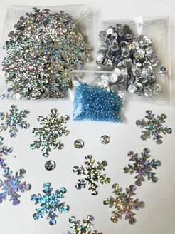 Пайетки снежинки 25 мм круглые 6 мм набор с бисером