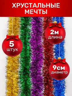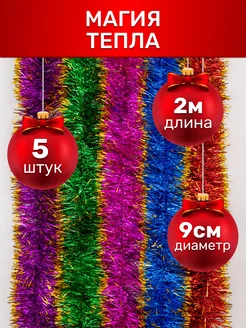 Разноцветная мишура с золотистыми кончиками в наборе 5шт