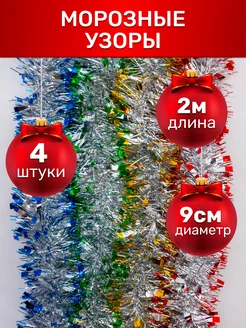 Мишура серебристая с разноцветными кончиками в наборе 4шт