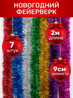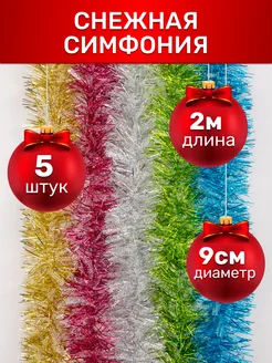 Разноцветная мишура с серебристыми кончиками в наборе 5шт