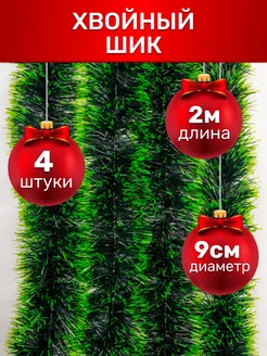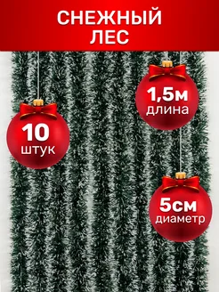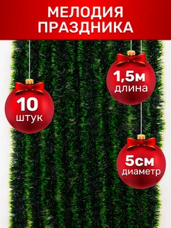 Зеленая мишура с белыми кончиками в наборе 10шт