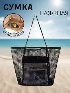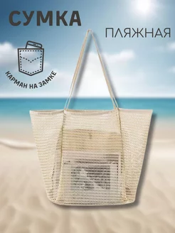 Пляжная сумка сетка с потайным карманом