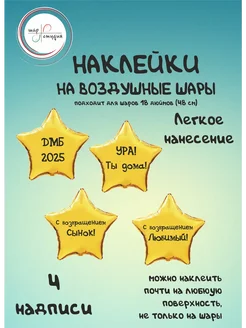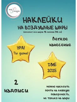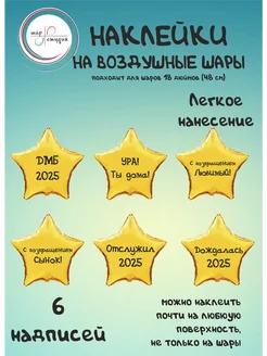 Наклейки на шары Дембель 2025, ДМБ 2025, золотые 6 шт