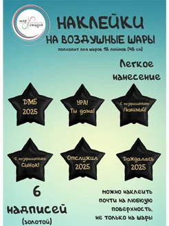 Наклейки на шары Дембель 2025, ДМБ 2025, черные 6 шт