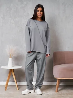 Лонгслив женский оверсайз спортивный хлопок базовый
